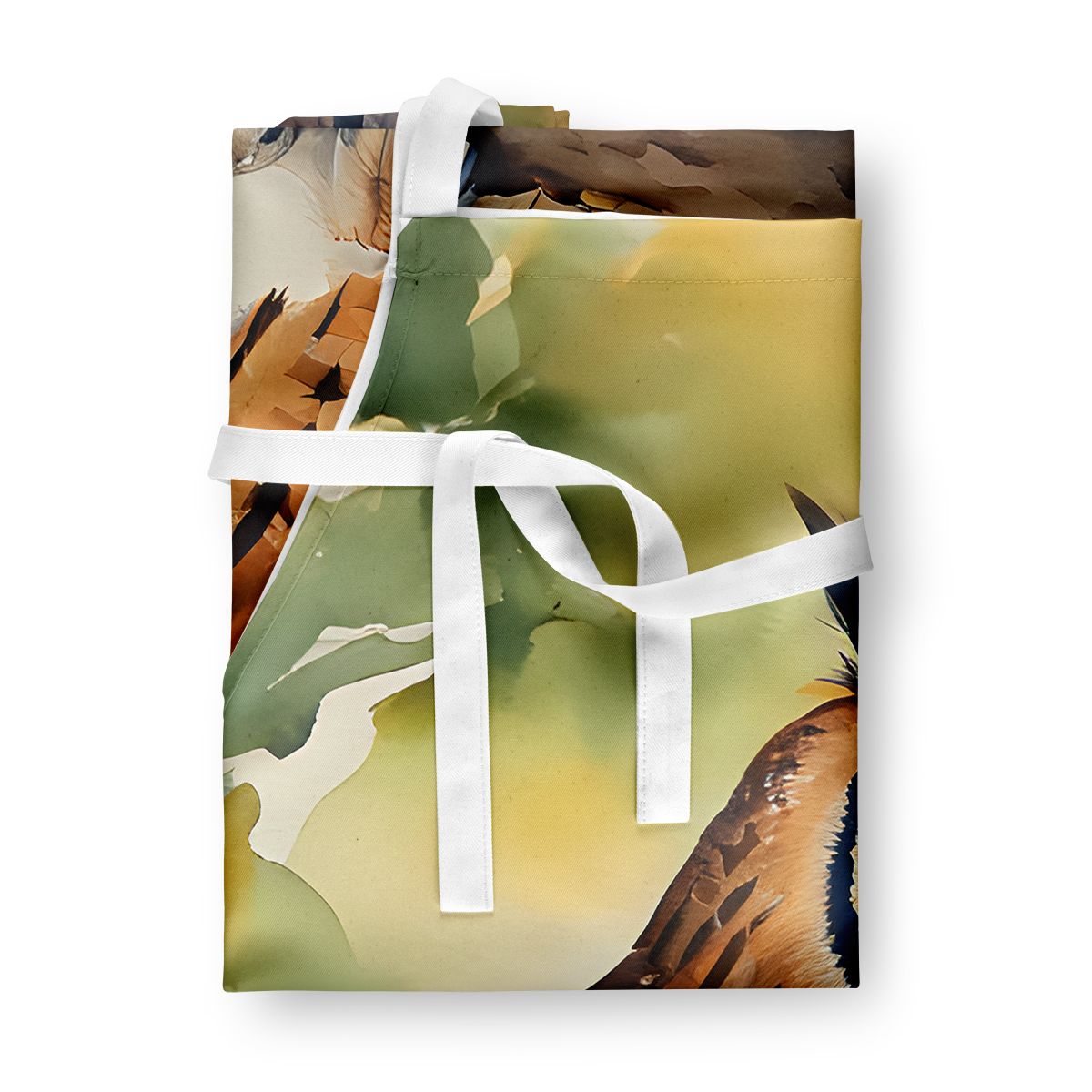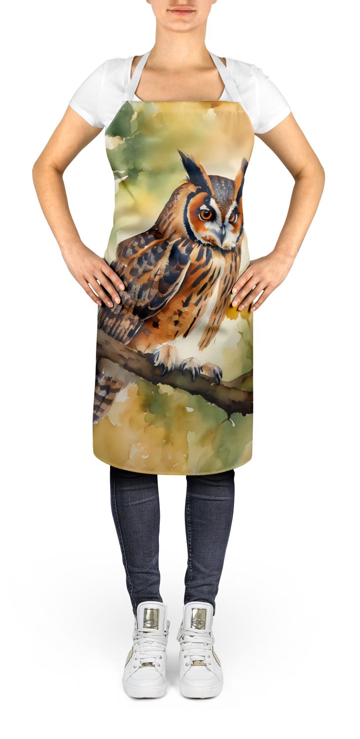 Apron featuring breed specific Long-Eared Owl artwork. Elevate your cooking, baking, and grilling experiences with our versatile Kitchen or BBQ Apron. This Bib Style apron isn't just limited to culinary activities - it also serves as an excellent baking apron, artist apron, server apron, gardening apron, or even a dog grooming apron. The apron showcases vibrant full-color artwork contributed by one of our talented artists, bringing a dash of style to your daily tasks. With dimensions of approximately 27"W x 30"H, it provides ample coverage to protect your clothing from spills and splashes. Our apron is meticulously crafted from 100% Ultra Spun Polyester, known for its durability and lightweight nature. The apron comes with white tie straps, ensuring a comfortable and adjustable fit for all. It's a perfect choice for kitchen apron enthusiasts, whether you are a woman or a man. Designed for easy maintenance, this apron is fully machine washable. The quick-drying polyester material actively reduces staining, keeping your apron looking fresh and new for longer. Our beautifully designed apron isn't just a functional kitchen accessory - it's a fashion statement in the culinary world!