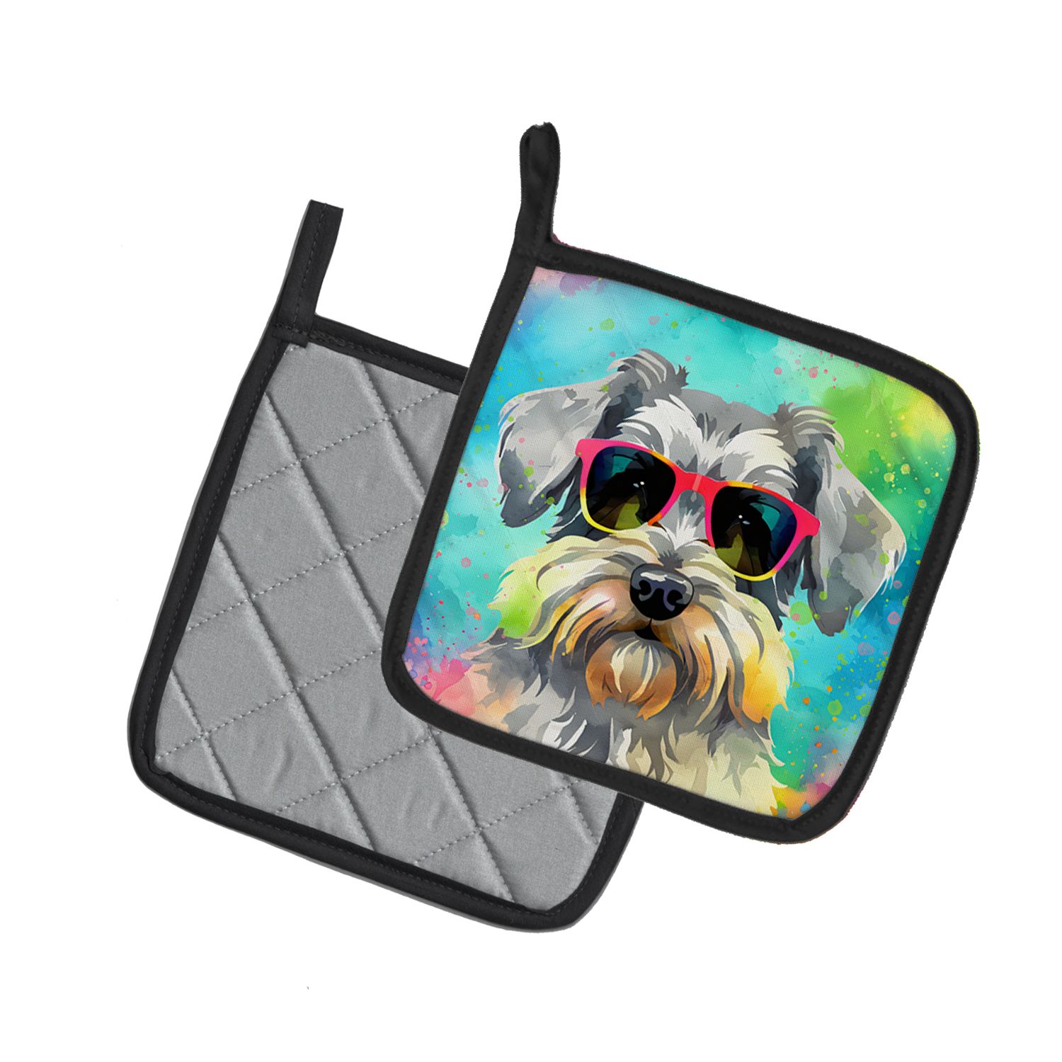 Schnauzer Hippie Dawg Pair of Pot Holders Kitchen Heat Resistant Pot Holders Sets Oven Hot Pads for Cooking Baking BBQ, 7 1/2 x 7 1/2