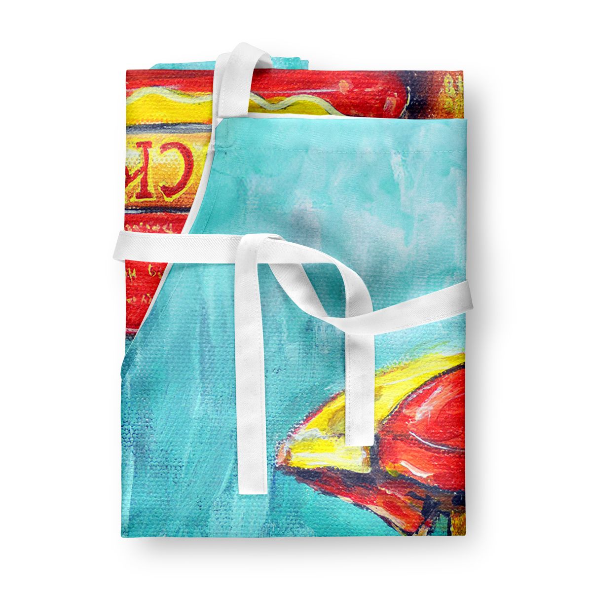 Elevate your cooking, baking, and grilling experiences with our versatile Kitchen or BBQ Apron. This Bib Style apron isn't just limited to culinary activities - it also serves as an excellent baking apron, artist apron, server apron, gardening apron, or even a dog grooming apron. The apron showcases vibrant full-color artwork contributed by one of our talented artists, bringing a dash of style to your daily tasks. With dimensions of approximately 27"W x 30"H, it provides ample coverage to protect your clothing from spills and splashes. Our apron is meticulously crafted from 100% Ultra Spun Polyester, known for its durability and lightweight nature. The apron comes with white tie straps, ensuring a comfortable and adjustable fit for all. It's a perfect choice for kitchen apron enthusiasts, whether you are a woman or a man. Designed for easy maintenance, this apron is fully machine washable. The quick-drying polyester material actively reduces staining, keeping your apron looking fresh and new for longer. Our beautifully designed apron isn't just a functional kitchen accessory - it's a fashion statement in the culinary world!