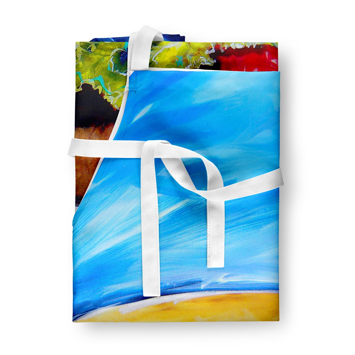 Elevate your cooking, baking, and grilling experiences with our versatile Kitchen or BBQ Apron. This Bib Style apron isn't just limited to culinary activities - it also serves as an excellent baking apron, artist apron, server apron, gardening apron, or even a dog grooming apron. The apron showcases vibrant full-color artwork contributed by one of our talented artists, bringing a dash of style to your daily tasks. With dimensions of approximately 27"W x 30"H, it provides ample coverage to protect your clothing from spills and splashes. Our apron is meticulously crafted from 100% Ultra Spun Polyester, known for its durability and lightweight nature. The apron comes with white tie straps, ensuring a comfortable and adjustable fit for all. It's a perfect choice for kitchen apron enthusiasts, whether you are a woman or a man. Designed for easy maintenance, this apron is fully machine washable. The quick-drying polyester material actively reduces staining, keeping your apron looking fresh and new for longer. Our beautifully designed apron isn't just a functional kitchen accessory - it's a fashion statement in the culinary world!
