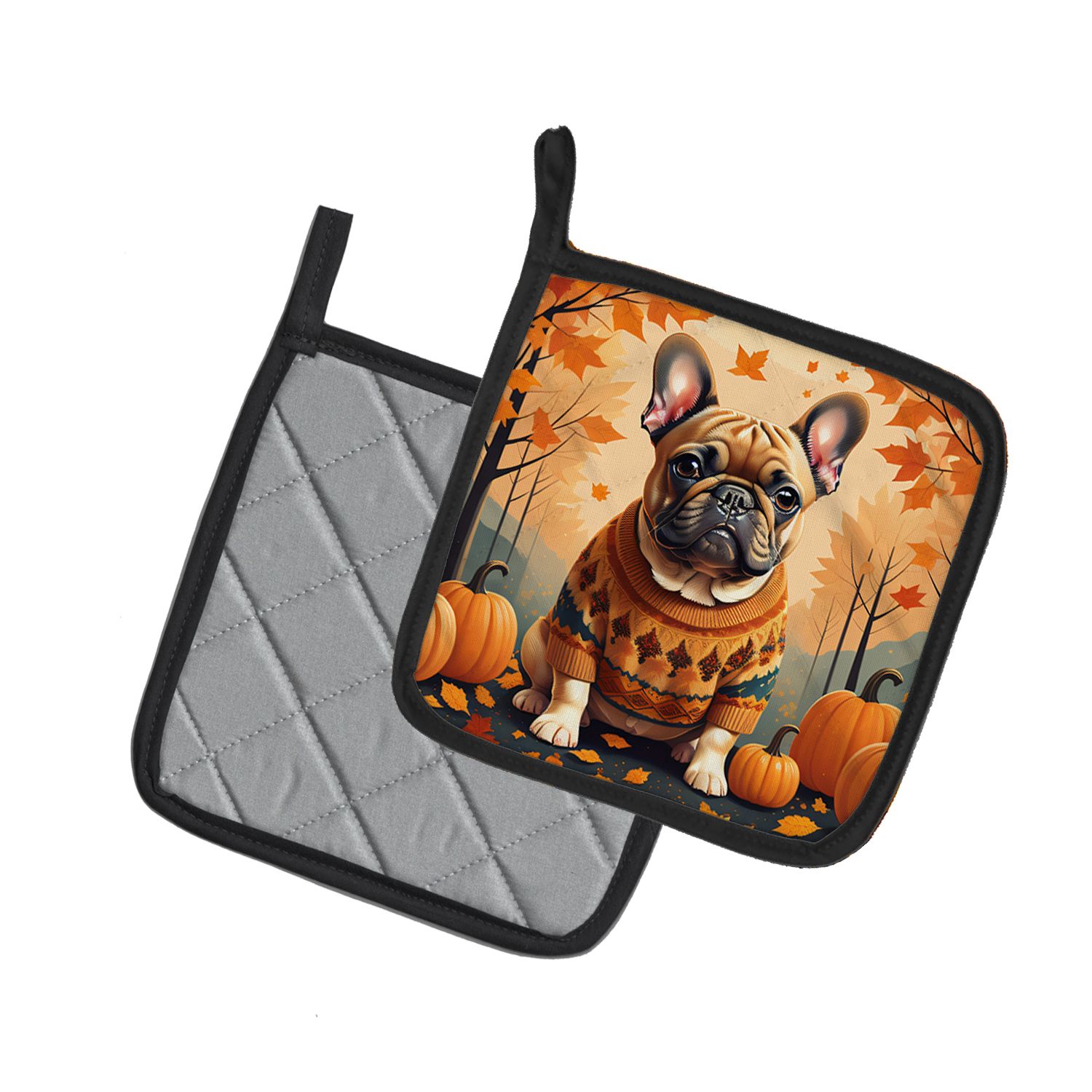 Home > Fawn French Bulldog Fall Pair of Pot Holders Kitchen Heat Resistant Pot Holders Sets Oven Hot Pads for Cooking Baking BBQ, 7 1/2 x 7 1/2
